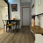 L'appartement offre aux hôtes un balcon, un coin salon et une cuisine entièrement équipée et donne sur la mer. Le logement est équipé d'une salle de bains dotée d'un sèche-cheveux et des draps de bain. Une douche à l'italienne, une toilette séparée et une machine à laver sont également disponibles.